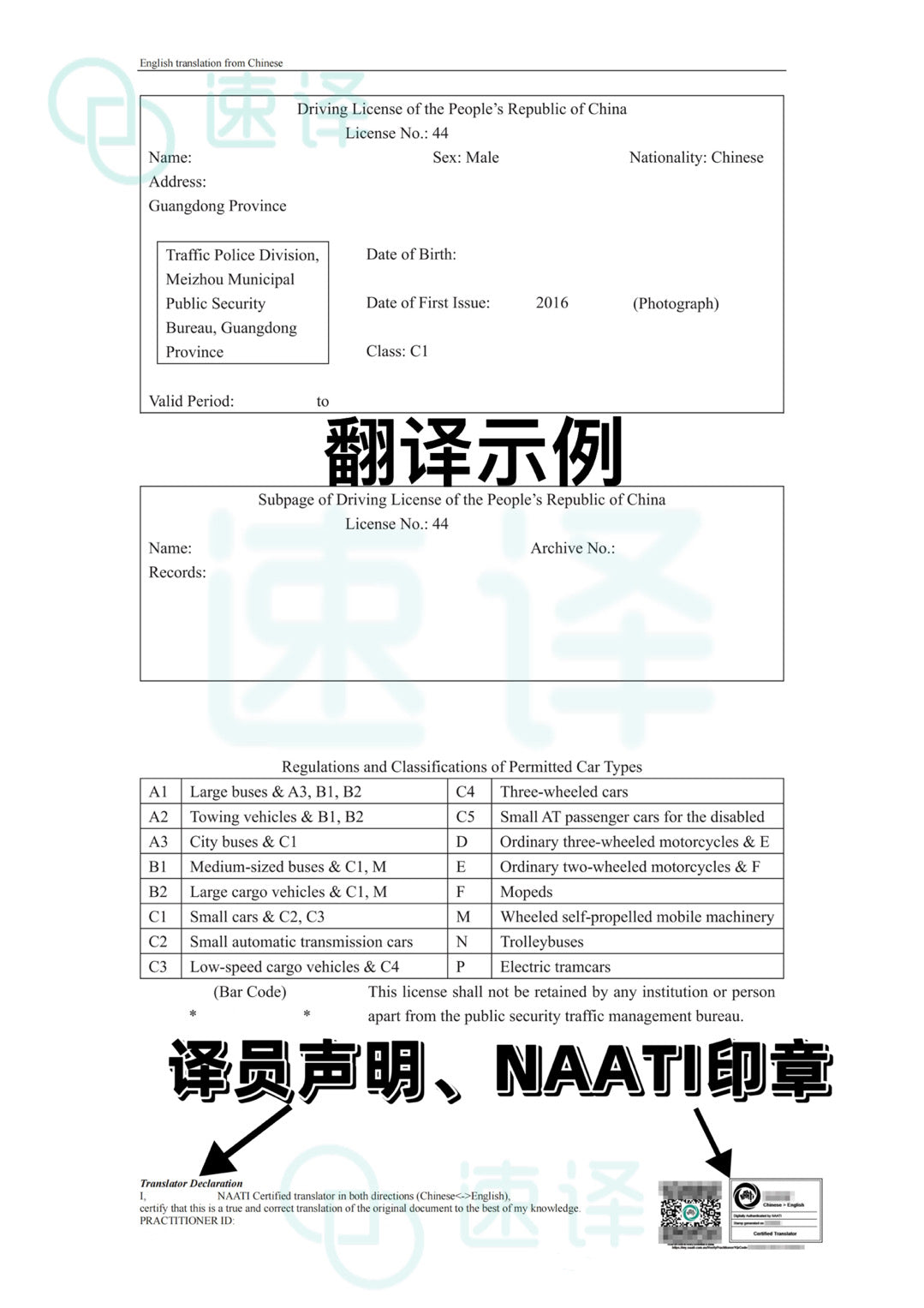 - 速譯的NAATI認證翻譯件被所有州政府部門認可,可用於自駕和換取當地駕照。