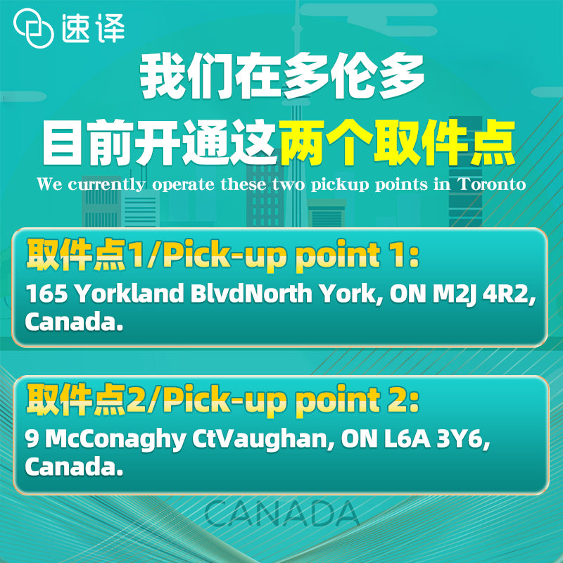 取件點2地址:9 McConaghy Ct Vaughan, ON L6A 3Y6, Canada.